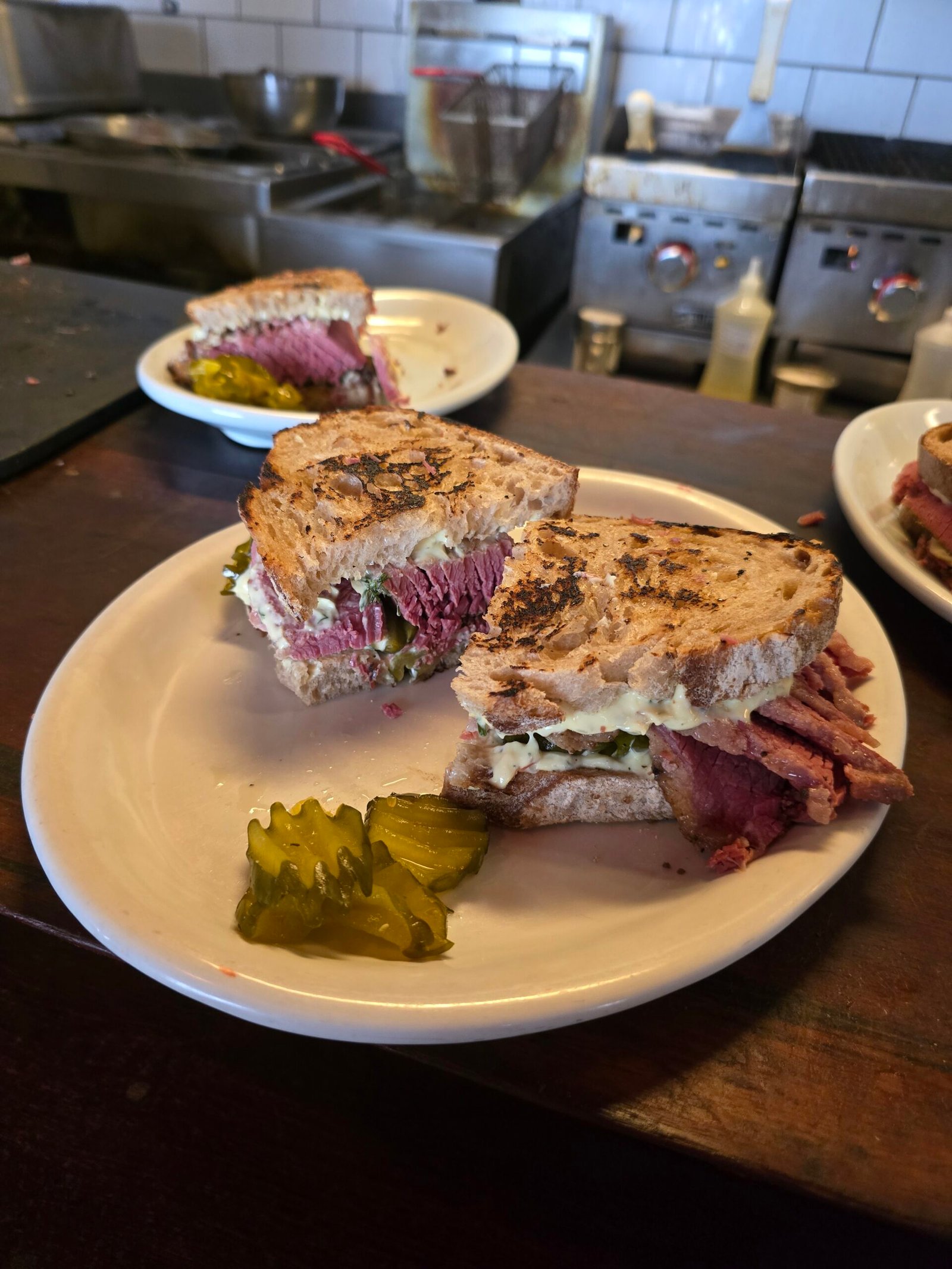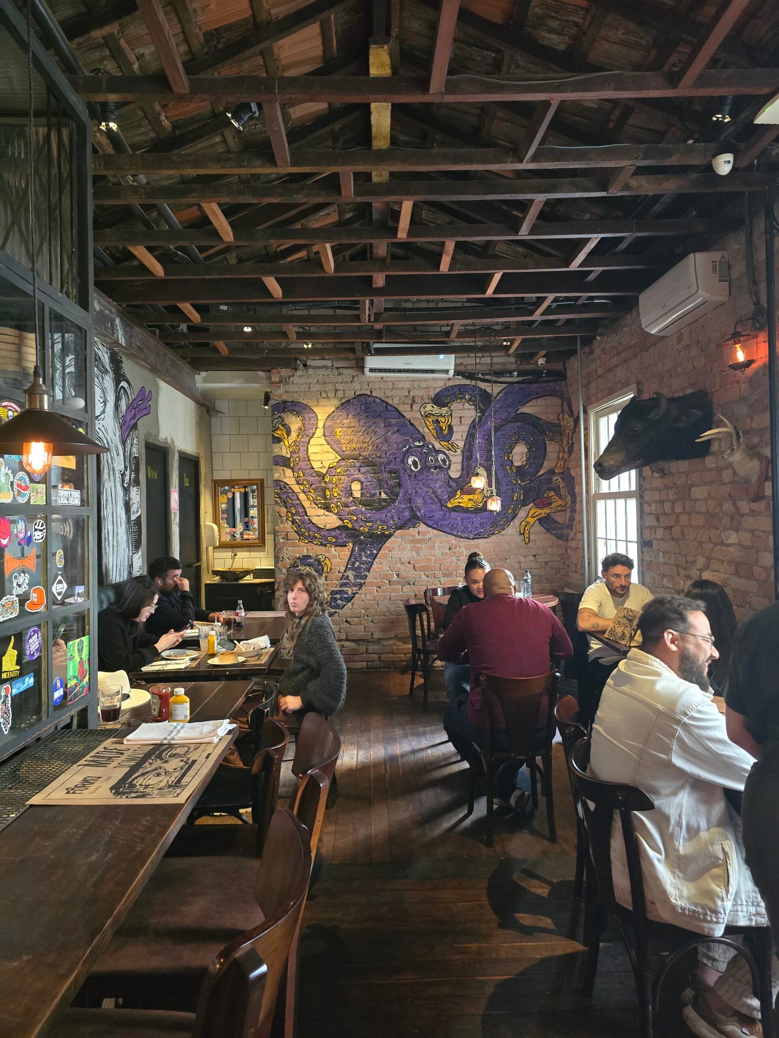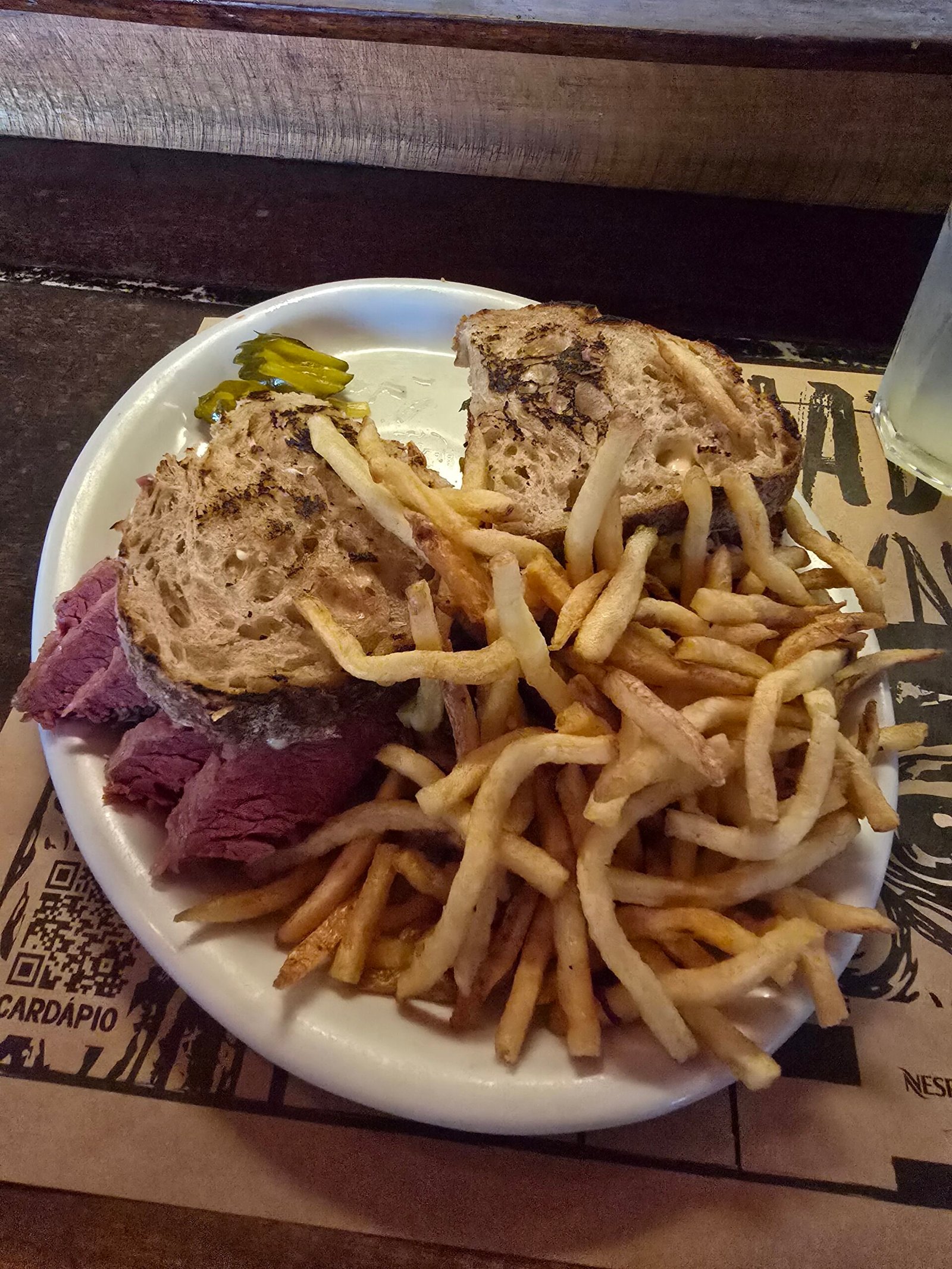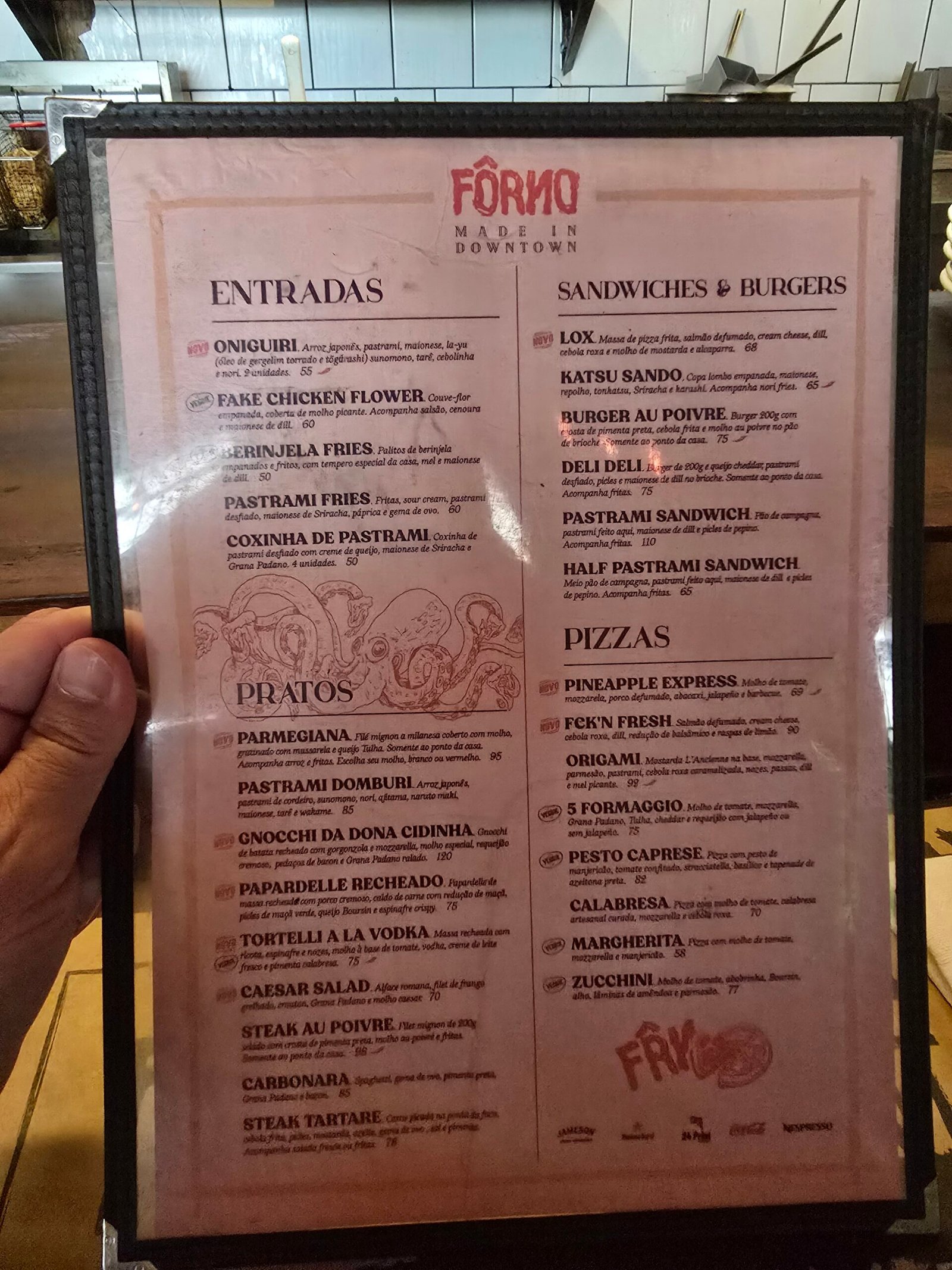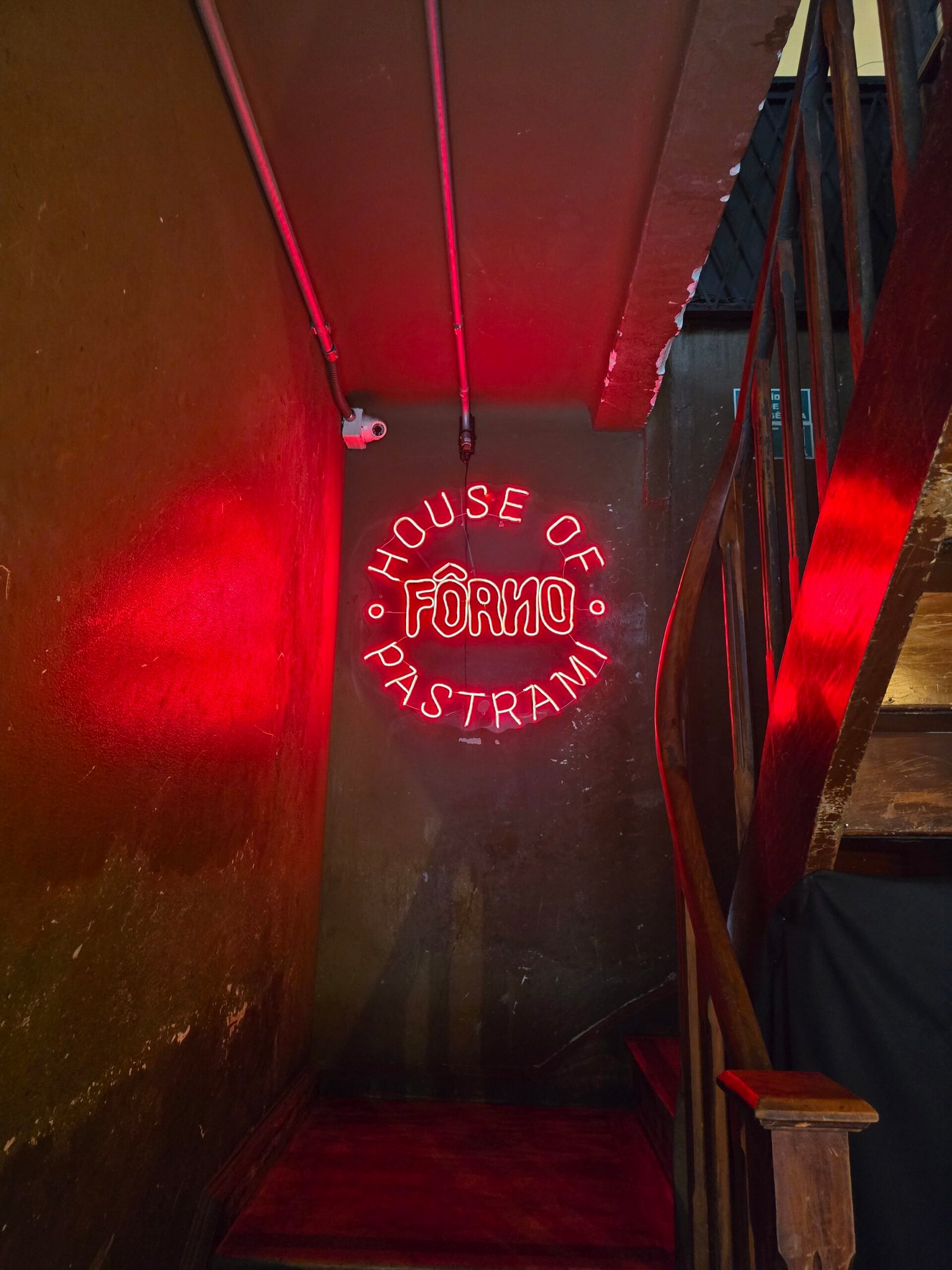 Um lugar chamado A Casa do Pastrami é praticamente um convite para comer… pastrami! E foi exatamente isso que fiz na minha visita ao Fôrno. O lugar é incrível! Para entrar, você sobe uma escadinha meio escondida, com um letreiro neon que já dá o clima. Lá dentro, o ambiente é super estiloso, com um bar bem bacana e um balcão de frente para a cozinha. Estava sozinho e escolhi o balcão. Que experiência! Além de ver o pessoal cozinhando e montando os pratos, pude acompanhar o pastrami sendo preparado na hora. Sim, a casa faz seu próprio pastrami! E é simplesmente espetacular!Indo ao que interessa, pedi o sanduíche de pastrami com pepino e fritas. É enorme, delicioso e vem com batatas crocantes. Super, mega, blaster recomendado! Mas o cardápio não vive só de pastrami. Os outros pratos, o hambúrguer e os demais sanduíches também são muito elogiados. Foi minha segunda visita, e com certeza outras virão!