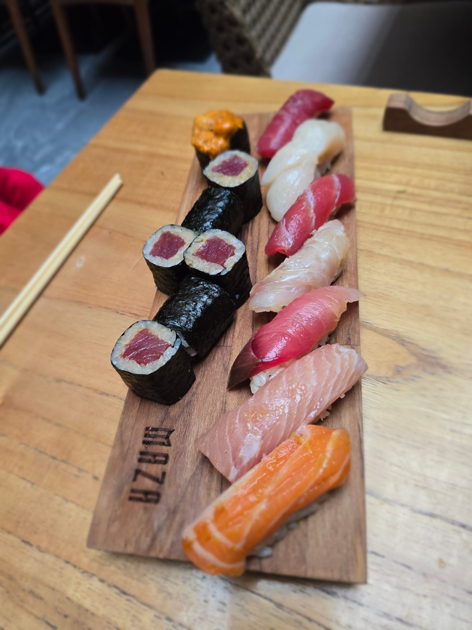 Eu adoro o Maza. Culinária japonesa bem-feita e com muito sabor. Seja no almoço executivo, a la carte ou experimentando os menus degustação oferecidos. No executivo sempre escolho tartar de salmão + combinado + abacaxi ou pudim. Zero erro. Em minha última visita tivemos: tempura de milho doce, vieira grelhada, camarão crocante, lula salteada com broto de alho, ussuzukuri de salmão com molho ponzu, sanduiche de lagostim e sushis e sashimis diversos. Um espetáculo. O serviço é ótimo. Vou terminar como comecei, eu adoro o Maza. Conheçam!