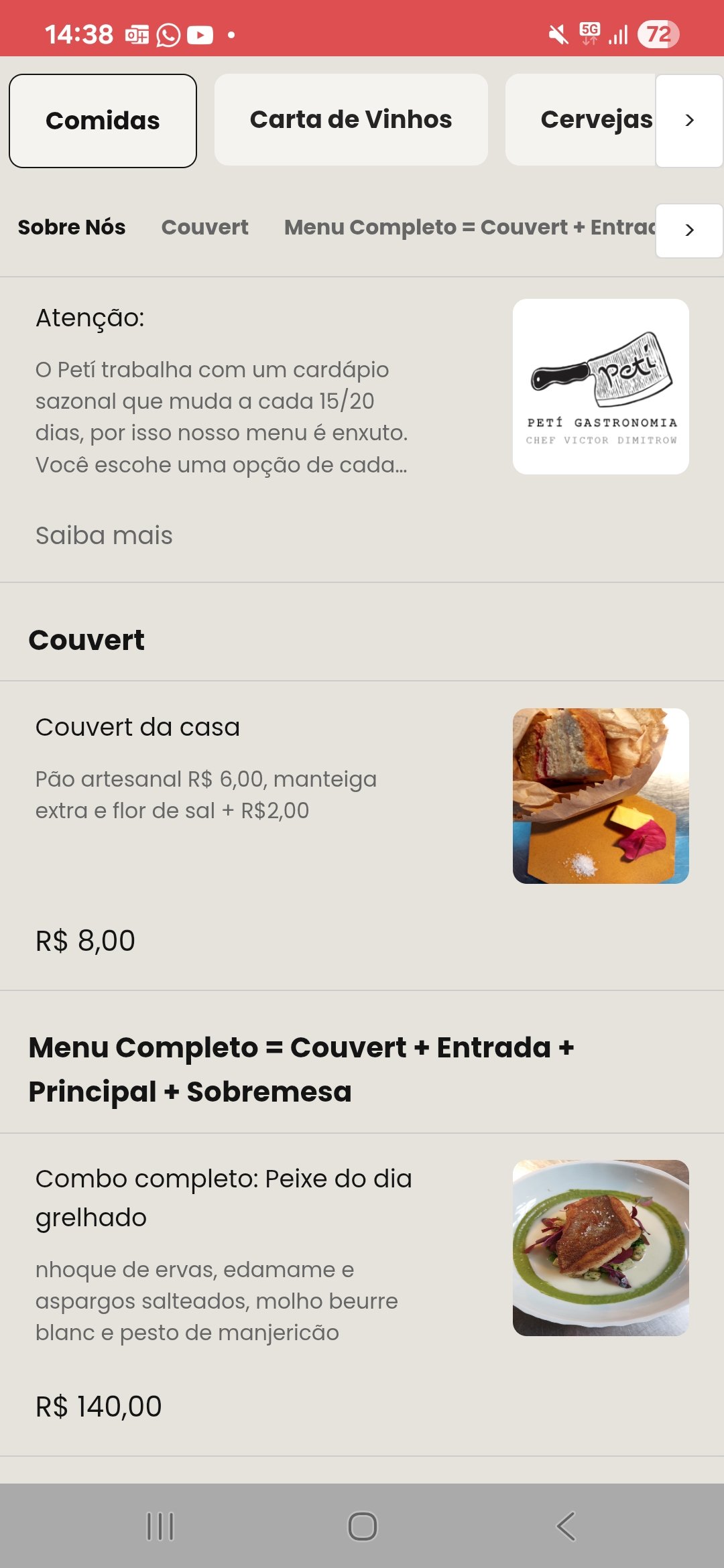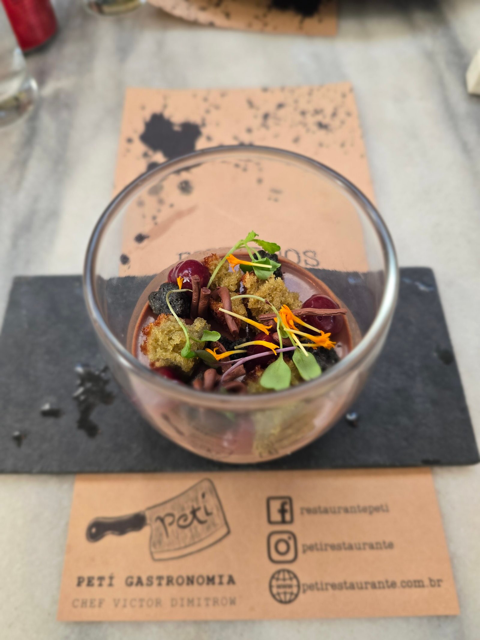 Não é todo dia que você almoça dentro de uma papelaria. Sim, o Peti está localizado dentro da loja Pintar, em Pompéia, o que justifica a placa “É aqui mesmo” na entrada. O chef Victor Dimitrow comanda a cozinha com maestria, servindo almoços de terça a domingo. Você pode optar pelo menu à la carte, mas recomendo o combo com entrada, prato principal e sobremesa. Espere ingredientes inusitados, como jiló e músculo, que refletem a criatividade do chef. Éramos quatro em um almoço de domingo. Para as entradas, escolhemos a fritada de três batatas e o bolinho de estudante com camarão – este último foi o favorito da mesa. Como pratos principais, pedimos músculo de wagyu braseado e peixe do dia com nhoque de ervas, ambos deliciosos. Para a sobremesa, experimentamos maçã pochê com gelatina de caramelo e chocolate branco caramelizado, além de um cremeux de chocolate meio amargo. O cremeux foi simplesmente espetacular!O ambiente é despretensioso, quase escondido, mas a cozinha surpreende com sua criatividade e ousadia. Uma experiência que vale a pena!